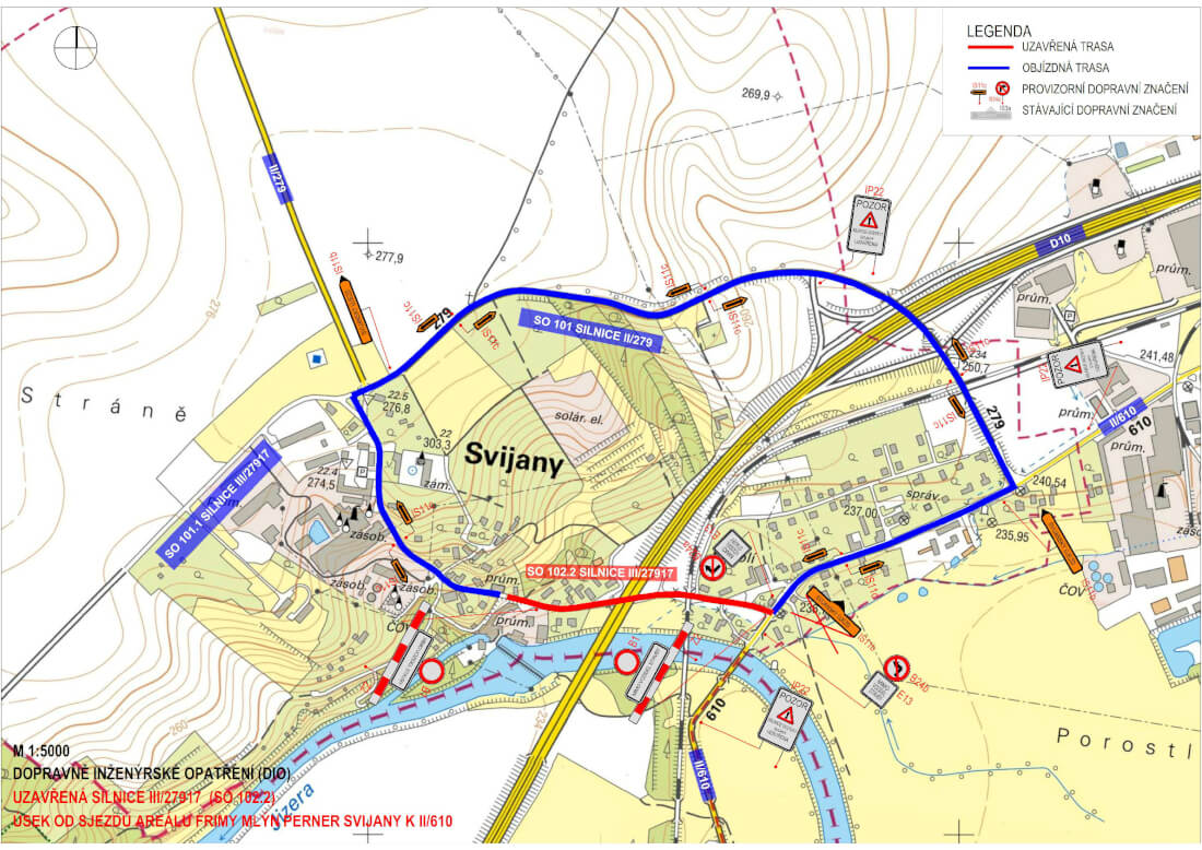 I. etapa - 20.4.-10.8.26 - zastavení provozu od křižovatky s hlavní silnicí II/640 (hl.křižovatka pod pivovarem u autobus.zastávky) → k Mlýnu Perner (Prodejna, Zámek, restaurace, recepce dostupné z horní strany komunikace)