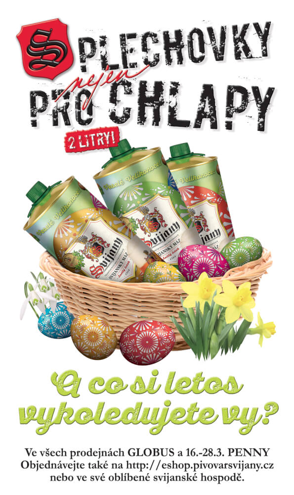 Obr. č.2: Tradiční plechovky nejen pro chlapy ve speciálním objemu 2L jsou nyní k dostání rovněž ve Velikonočním designu. Uvnitř se nachází zákazníky nejoblíbenější nepasterovaný Svijanský Máz 11%.