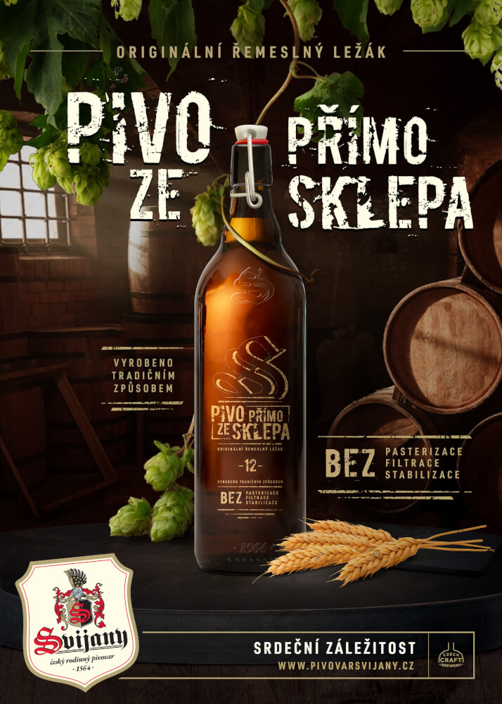 Není pivo jako pivo. Vedle piv na žízeň, k jídlu nebo na posezení s přáteli jsou tu ještě piva unikátní, piva pro skutečné fajnšmekry. Mezi ta se jistě rychle zařadí výjimečný dvanáctistupňový ležák PIVO PŘÍMO ZE SKLEPA, poslední novinka Pivovaru Svijany. V elegantní litrové embosované hnědé lahvi s keramickým patentním uzávěrem bude ozdobou chladicí vitríny jakékoli pivotéky, obchodu se zdravou výživou nebo restaurace. V prodeji bude časem také ve vybraných prodejnách běžné maloobchodní sítě a obchodních řetězcích.