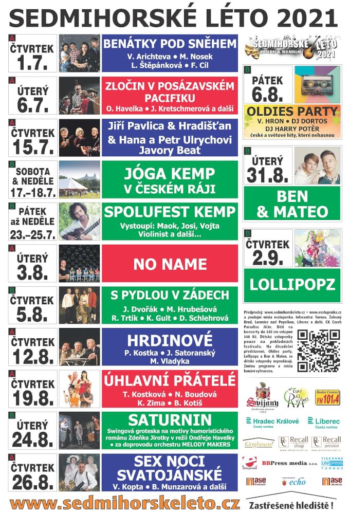 Program vyvrcholí dne 3.8. 2021 koncertem kapely NO NAME. Ale neméně zajímavé jsou všechny akce a vřele můžeme doporučit všechny divadelní akce.