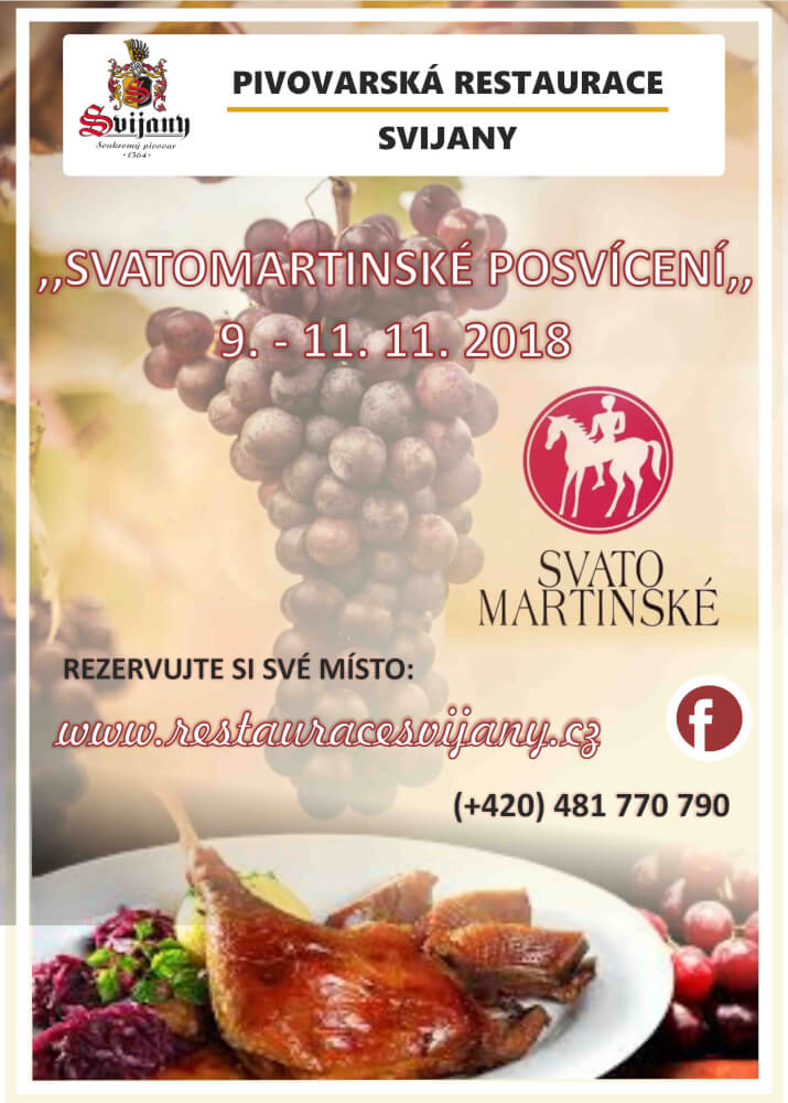 Svatomartinské posvícení 9. - 11. listopadu 2018 se koná v pivovarské restauraci. Rezervujte si své místo hned na restauracesvijany.cz a +420 481 770 790