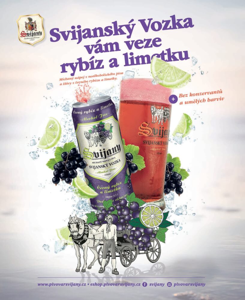 Svijany, 10. června 2019 - Pivovar Svijany uvádí na trh nový míchaný nápoj z nealkoholického piva. Svijanský Vozka Černý rybíz a limetka je výsledkem spojení piva bez alkoholu a limonády z přírodních šťáv z černého rybízu a limetky a díky přirozenému obsahu oxidu uhličitého nabízí rychlé osvěžení třeba při sportu nebo pří jízdě vozem. V točené podobě je k dostání ve vybraných restauracích, v plechovkách pak zatím v prodejnách sítě Globus, vybraných prodejnách Albert a na e-shopu pivovaru.