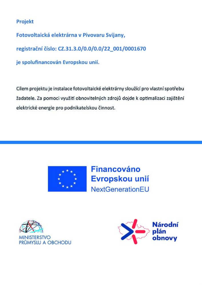 PIVOVAR SVIJANY, a.s. dodržuje platný zákon o regulaci reklamy, Kodex rady pro reklamu a dobrovolný etický kodex Iniciatviy zodpovědných pivovarů. Proto žádáme osoby mladší 18 let, aby nevstupovaly na naše internetové stránky. Děkujeme za pochopení.