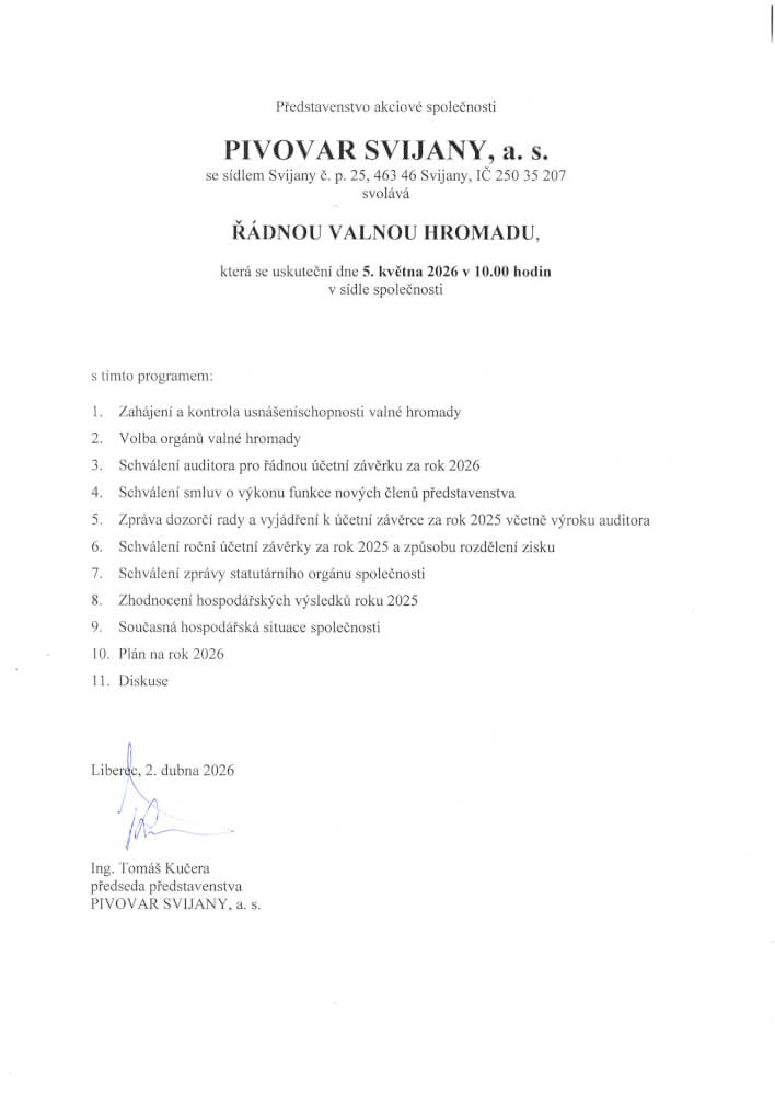 PIVOVAR SVIJANY, a.s. dodržuje platný zákon o regulaci reklamy, Kodex rady pro reklamu a dobrovolný etický kodex Iniciatviy zodpovědných pivovarů. Proto žádáme osoby mladší 18 let, aby nevstupovaly na naše internetové stránky. Děkujeme za pochopení.